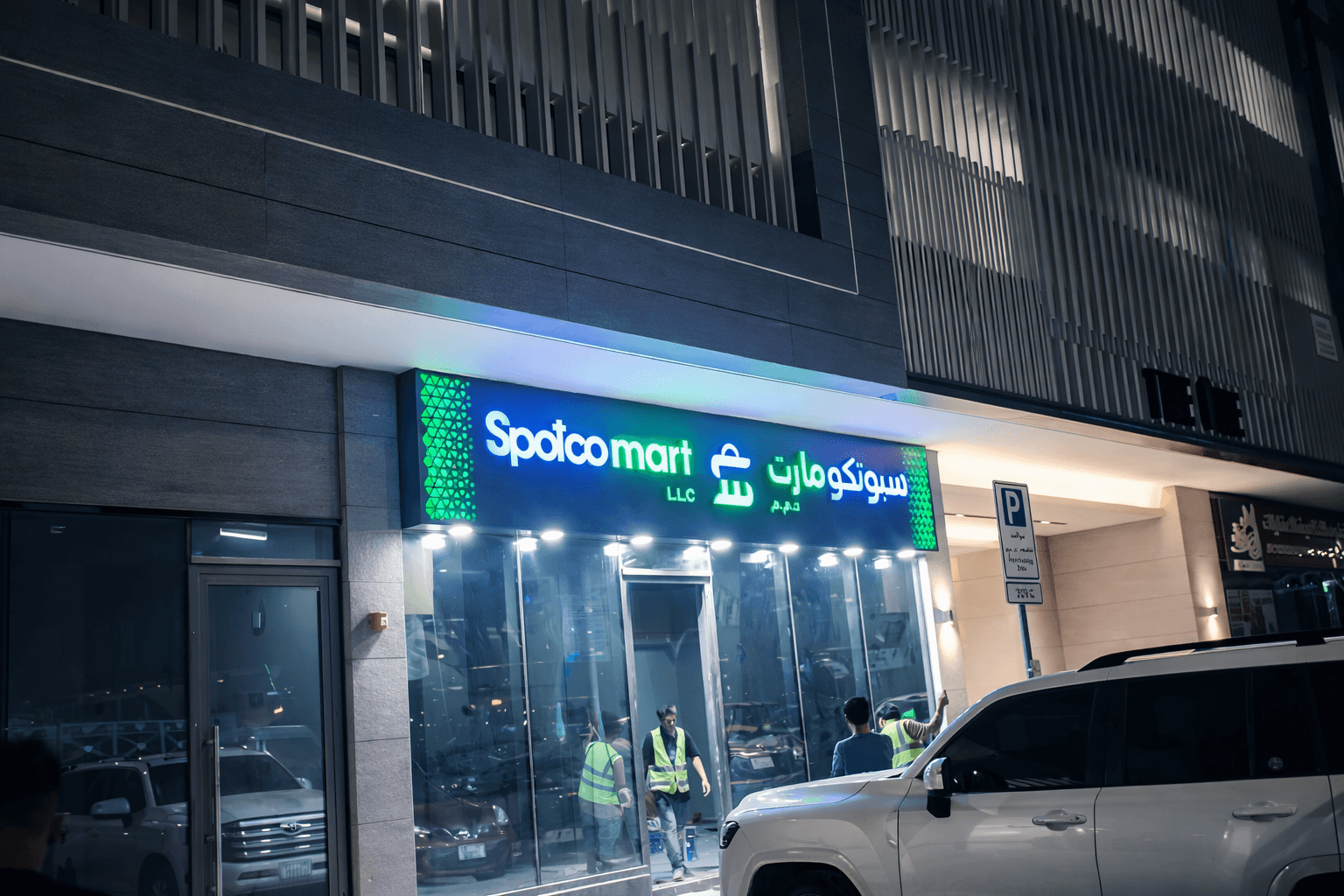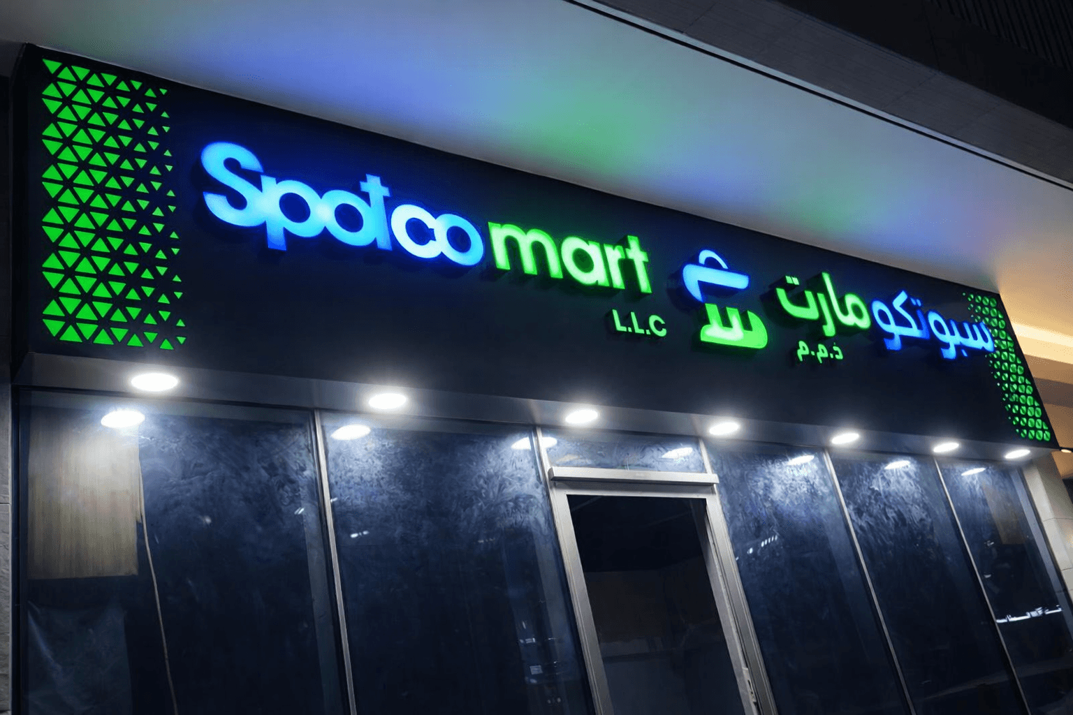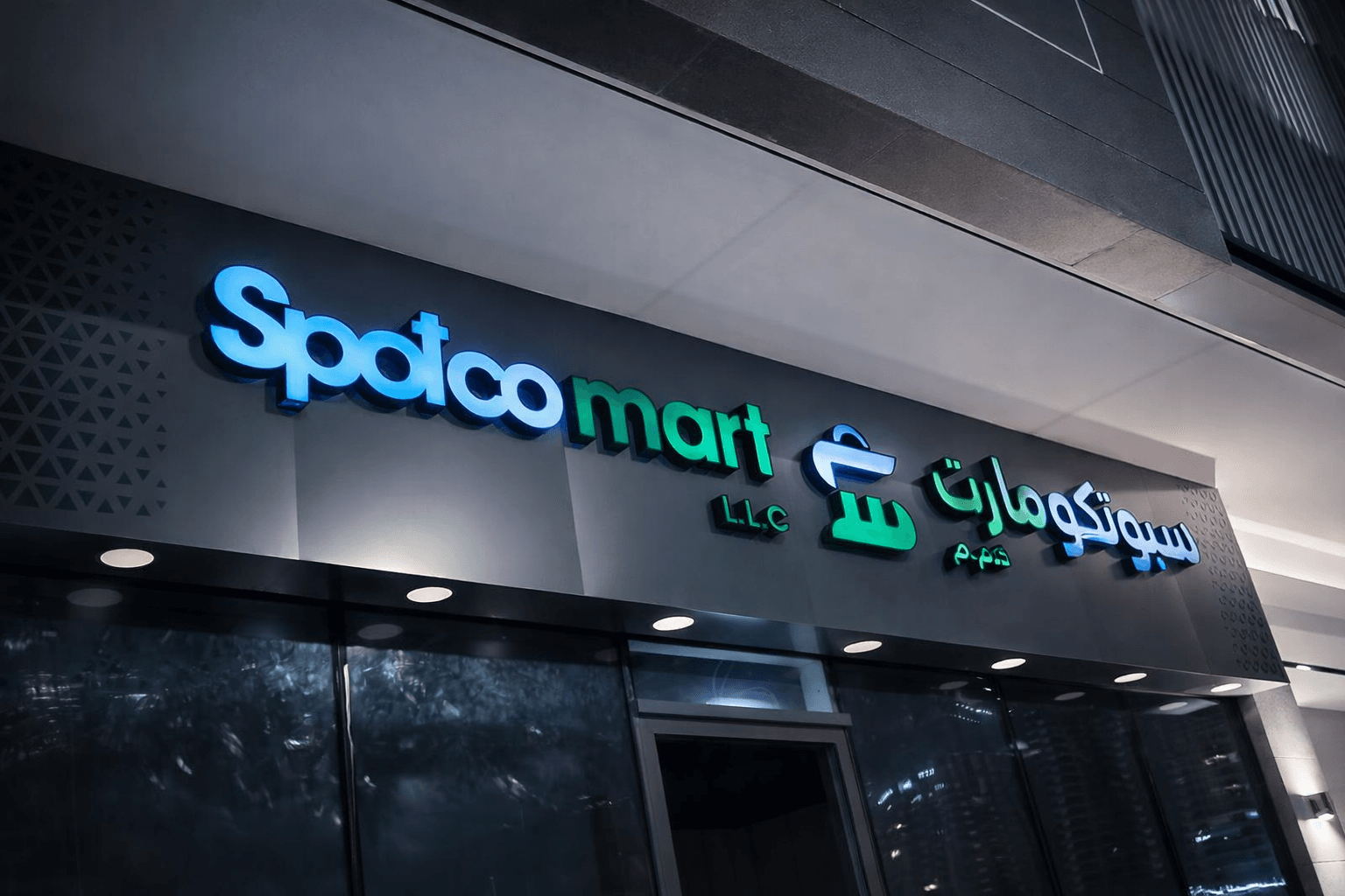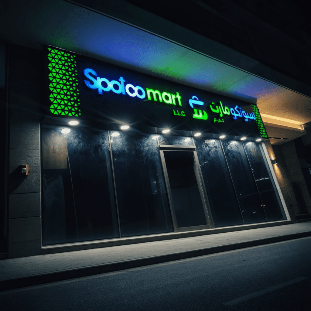 We recently completed a premium 3D illuminated signage project for Spotco Mart, designed to elevate the storefront’s visual appeal and strengthen brand identity. This project showcases a modern retail signage solution featuring high-quality materials, vibrant LED lighting, and a clean, contemporary finish. The combination of bold English lettering and clear Arabic typography ensures strong communication with a diverse audience, while the overall design enhances the architectural look of the space, especially during nighttime.